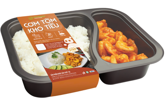Cơm tôm kho tiêu là món ăn đậm đà, kết hợp giữa tôm kho săn chắc với tiêu cay nồng và cơm trắng dẻo thơm. Tôm tươi được tẩm ướp gia vị, kho cùng nước màu tạo màu sắc hấp dẫn và hương vị mặn ngọt hài hòa