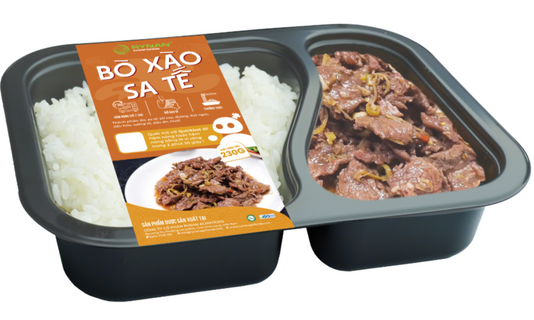 Thành phần: gạo, thịt bò, sả, ớt, bột ngọt, đường, nước mắm, nước màu.